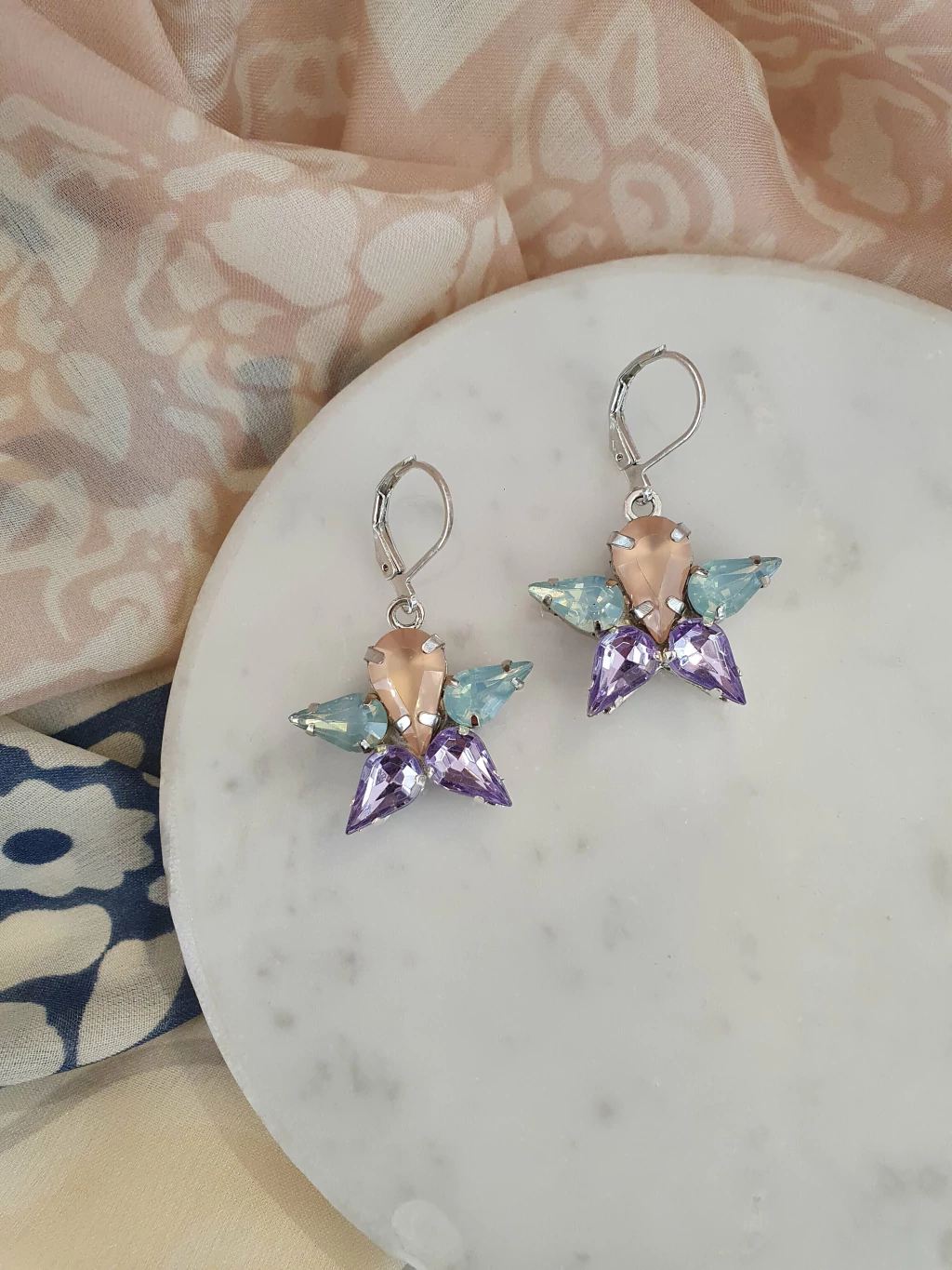 Aros pasante de metal con con gemas facetadas
