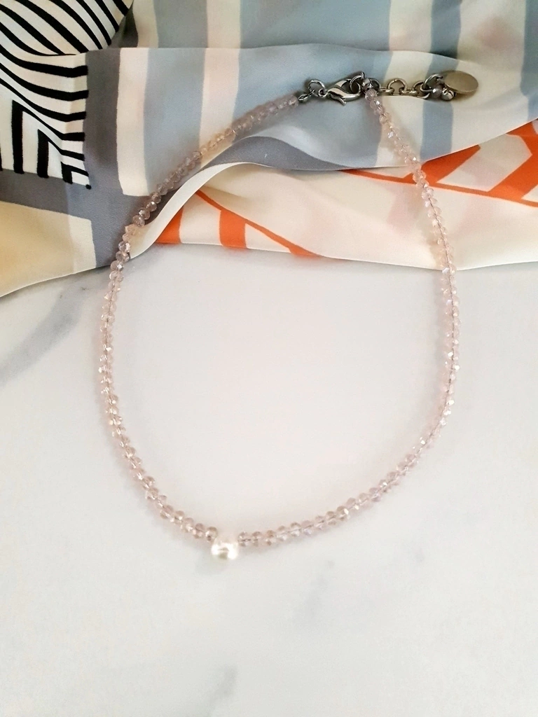 Collar corto tipo chocker de cristales de 4mm. Su dije principal es una perla natural de rio.